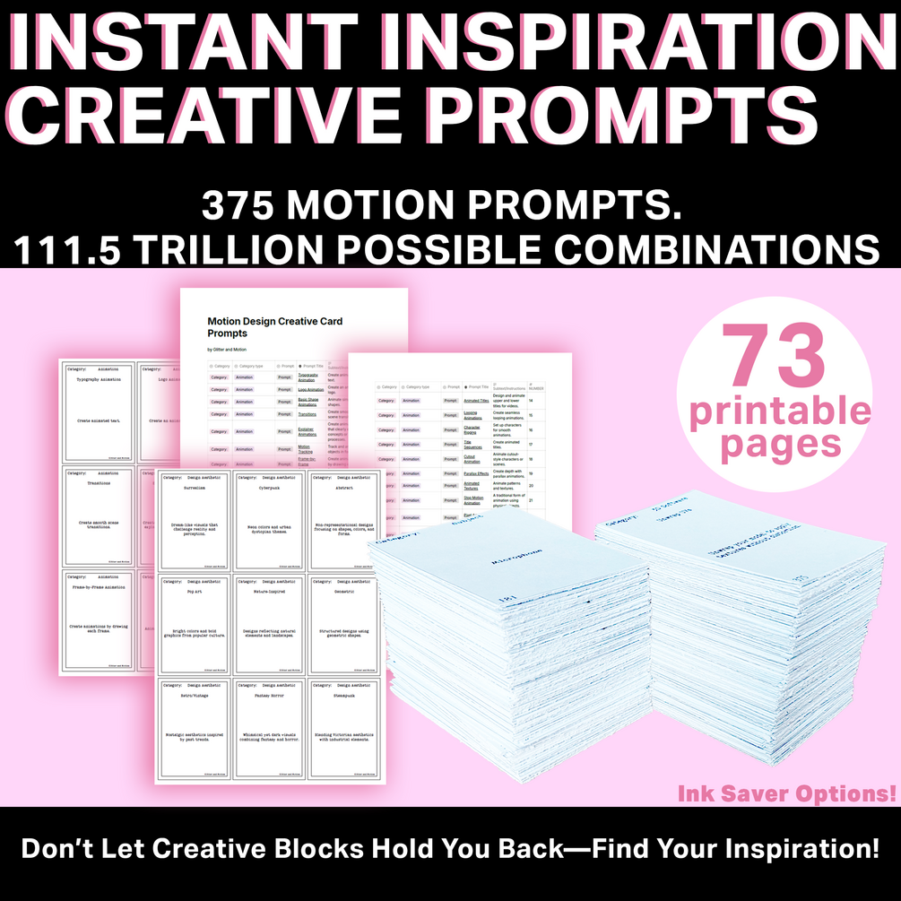 Created by someone who knows the struggle- I've been a video editor and motion designer for 16 years, I know the feeling of staring at a blank screen. These prompts were born out of my own struggles with inspiration and originality.